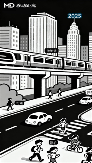 3. 無壓力目標體系與生活儀式感營造:移動距離App摒棄了傳統健康應用那種充滿競爭和壓力的目標設定。它不設定必須完成的每日里程目標,也不進行好友排名。它的價值在于忠實地記錄人生遠行,無論是日常通勤的瑣碎,還是跨越城市的壯游,都被平等地視作人生的一部分。用戶可以在年終回顧時,看到自己一年來走過的總距離,這種 “用距離丈量” 的儀式感,賦予了平凡生活以史詩般的厚度。