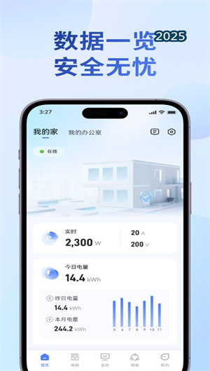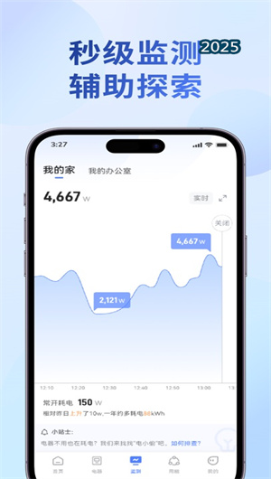 1. 高頻實時用電監測與多維數據可視化:伏特茲App的核心功能在于其實時用電監測系統,通過連接智能電表或專屬電力監測硬件,以秒級頻率采集家庭總路的電壓、電流、有功功率及功率因數等關鍵用電參數。所有數據通過清晰的動態曲線圖與數字儀表盤進行實時展示,用戶可直觀掌握家庭用電的瞬時動態與整體負荷水平,將傳統模糊的用電感知轉變為精確的數據驅動認知,異常工況識別響應時間縮短至3秒以內。