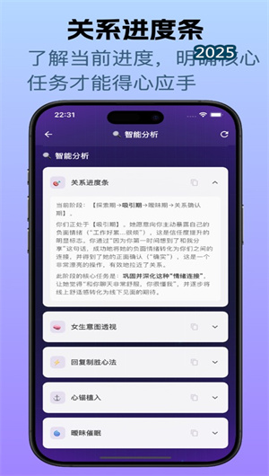軍師戀盟內置完善的關系評估系統,通過分析聊天頻率、互動深度和回應熱度等指標,客觀評估當前關系階段并提供相應的升級策略。系統會基于漸進原則設計合理的關系過渡方案,在關鍵節點提供突破友誼區的具體建議,避免操之過急或錯失良機。同時,平臺還提供情感預警功能,及時提醒用戶可能存在的溝通風險,確保關系發展始終處于健康軌道。