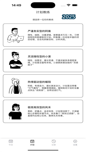 為解決用戶在不同領域制定計劃的啟動難題,計劃教練構建了一個豐富的多領域模板庫。庫內預置了涵蓋學習計劃、健身安排、個人成長路徑及工作項目管理在內的眾多專業化模板。用戶可以根據自身需求,選擇相應模板進行一鍵部署,快速生成一個結構完整、邏輯嚴謹的初始計劃,再根據自身情況進行微調。這套模板生態極大地降低了專業計劃的門檻,讓每個人都能站在“巨人”的肩膀上起步。