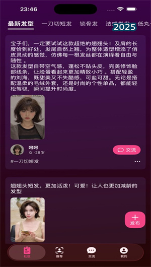 俏發社圈是一款專為女性用戶打造的垂直領域發型社交平臺,構建了集發型作品分享、美發技巧交流與造型靈感獲取于一體的女性專屬社區。本應用通過嚴格的身份驗證機制與內容審核體系,確保社區環境純粹性,打造安全舒適的發型交流空間。平臺采用智能圖像識別技術與發型特征標注系統,結合個性化推薦算法,為用戶提供精準的發型靈感庫與造型解決方案。借助社交互動功能與美發達人體系,形成良性的美發知識傳播生態,重新定義女性發型社交的數字化體驗。