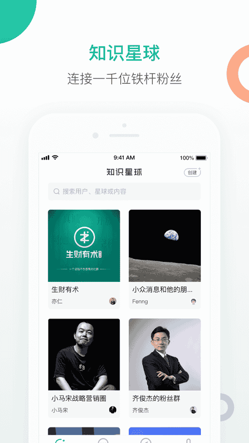 知識星球App,深圳市大成天下信息技術有限公司研發的創作者連接鐵桿粉絲蘋果軟件,運營高品質社群,實現知識變現的工具。