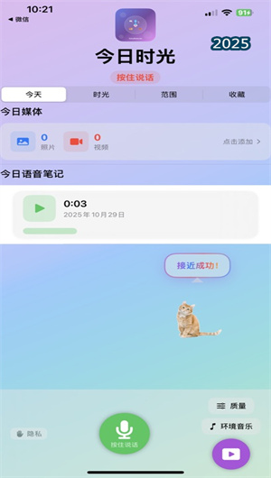 今日時光App是一款專為iPhone和iPad設計的智能生活記錄平臺,深度融合了多模態內容整合技術與本地化隱私保護架構。該應用通過創新的一鍵式記錄引擎和自動化內容生成系統,構建了一個集語音筆記、媒體日記、日常總結于一體的完整記錄生態。其核心的智能時間軸整理功能能夠自動按時間順序組織所有內容,而隱私優先設計確保所有數據都存儲在設備本地。今日時光App重新定義了數字時代的生活記錄方式,將碎片化的生活片段轉化為系統化的珍貴回憶,讓用戶能夠優雅地保存每一個值得銘記的瞬間。