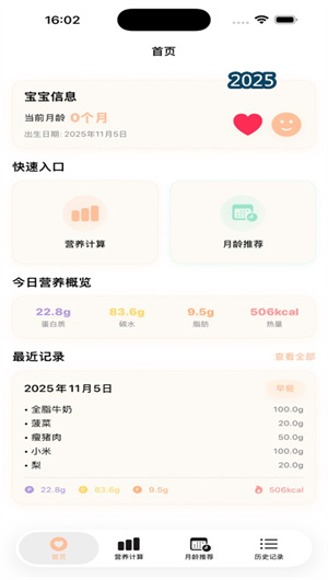 在嬰幼兒成長的關鍵階段,科學合理的營養攝入是奠定寶寶一生健康的基石。輔食統算App應運而生,它是一款專為0-3歲寶寶家庭量身定制的智能營養管理平臺,致力于將專業的喂養知識轉化為簡單易行的日常實踐。本應用深度融合營養學算法、生長曲線分析與飲食數據追蹤技術,構建了一個集輔食計劃、營養分析、過敏原預警與成長記錄于一體的科學喂養生態系統。其核心價值在于將復雜的營養計算過程自動化、可視化,讓父母能夠輕松掌握寶寶的營養攝入狀況,為寶寶的每一個成長時刻提供精準、安心的喂養支持,真正實現“讓愛更科學,讓成長更健康”的育兒理念。