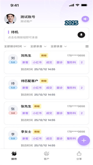 1. 極簡(jiǎn)操作與無縫的智能化體驗(yàn)。言跡智能App的設(shè)計(jì)秉承“科技賦能于人”的理念,追求極致的用戶體驗(yàn)。對(duì)于一線員工而言,其操作流程高度簡(jiǎn)化,只需在接待開始時(shí)點(diǎn)擊“開始接待”,結(jié)束時(shí)點(diǎn)擊“結(jié)束接待”,即可觸發(fā)背后一系列復(fù)雜的AI自動(dòng)分析流程。這種“即戴即用”的設(shè)計(jì)最大限度地降低了對(duì)原有工作流的干擾,使員工能夠快速上手,無需額外培訓(xùn)。整個(gè)從語音采集到報(bào)告生成的過程實(shí)現(xiàn)了高度自動(dòng)化,將智能工具無縫嵌入日常工作中,真正做到了科技的無感與高效。