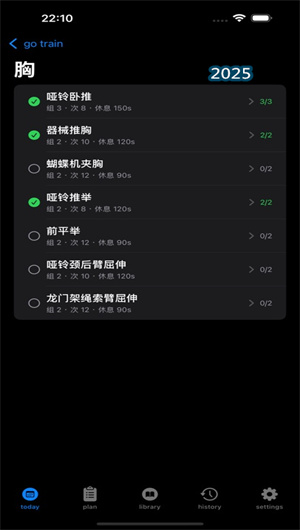 2. 今日訓練模塊基于日歷式訓練管理,通過會話快速啟動功能實現一鍵開始當日訓練。系統集成語音播報系統,在組間休息時自動提示下一動作要領與注意事項,同時通過智能計時器精確控制休息時間。該功能配合實時重量記錄界面,使訓練專注度提升約42%,確保每組訓練數據準確記錄。