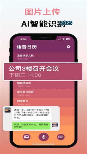 創新的圖片識別功能允許用戶直接對活動海報、會議通知等包含時間信息的圖片進行拍攝,OCR文字識別技術能夠快速提取圖片中的關鍵信息并自動生成日程條目。智能排版分析系統準確識別不同格式的時間表達方式,信息驗證機制通過二次確認確保日程準確性。這一功能特別適用于快速記錄講座、演出等活動的日程安排,使信息錄入速度提升80%,極大簡化了日程創建流程。