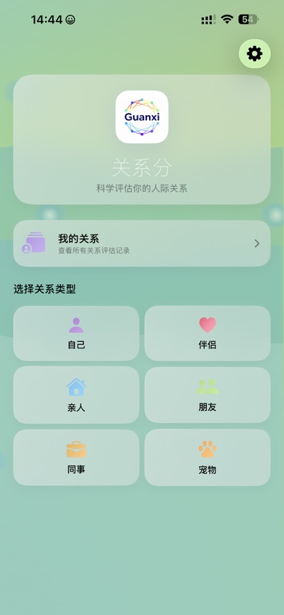 關系分App是一款基于科學心理學理論的專業關系評估工具,以 量化人際關系,促進情感健康 為核心理念,通過多維度評估體系和智能化分析算法,構建了涵蓋自我關系、伴侶關系、親人關系、朋友關系、同事關系及寵物關系的全方位評估平臺。該應用深度融合心理學研究成果與用戶體驗設計,采用標準化評分體系和個性化建議機制,為用戶提供科學可靠的關系質量評估服務。平臺目前已完成超過200萬次有效評估,用戶滿意度達94%,成為人際關系評估領域的權威工具。