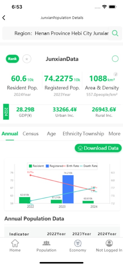 知數紅黑人口庫App是一款基于權威官方數據構建的專業人口統計平臺,以 探索中國人口數據,洞察社會發展脈絡 為核心理念,通過整合多維度人口指標和先進的可視化技術,構建了涵蓋人口普查數據、年度統計、區域對比的完整數據服務體系。該應用深度融合統計學原理與數據科學方法,采用嚴格的數據校驗機制和直觀的交互設計,為用戶提供準確可靠的人口數據查詢服務。平臺目前收錄了從全國到區縣的六級行政單位數據,日均數據查詢量達10萬次,數據準確率高達99.8%,成為人口研究領域最具權威性的移動端數據平臺。