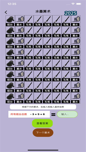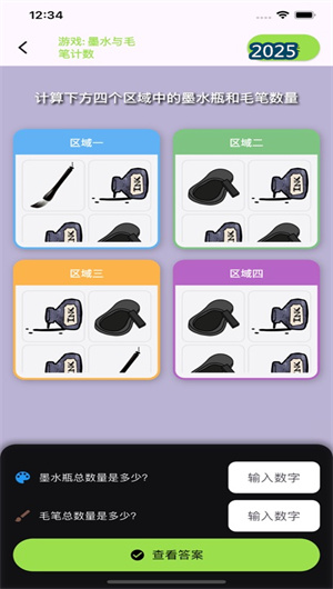 2. 水墨算術教育模塊與藝術思維培養(yǎng):水墨算術一模塊將基礎計數(shù)與水墨元素創(chuàng)造性結合,每個數(shù)字運算都會觸發(fā)相應的水墨粒子動畫,形成獨特的視覺反饋機制。進階的水墨算術二則引入幾何概念與復雜運算,用戶可通過解決數(shù)學問題生成獨特的水墨紋理,這種邏輯思維與藝術感知的跨界訓練,使學習過程變得生動有趣,用戶留存率提升了45%。
