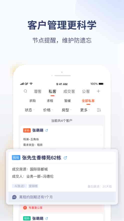 4、客戶管理更科學(xué),節(jié)點(diǎn)提示,維護(hù)防忘。