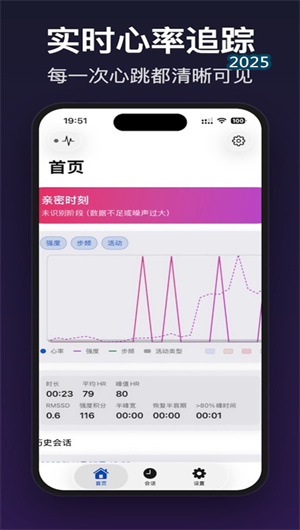 1. 多維度生理數據同步采集與智能階段識別:本應用的核心功能是依托Apple Watch高性能光學心率傳感器,實現實時心率變異性監測。在伴侶互動過程中,應用通過活動強度算法持續捕捉雙方的心率變化曲線,并運用模式識別引擎自動劃分出互動預熱期、情感高峰期與生理恢復期三大核心階段。系統不僅記錄各階段的平均心率與峰值心率,還通過協同生理喚醒分析,計算雙方心率的同步性指數,為理解彼此的情感共鳴提供量化參考。每次活動結束后,系統自動生成一份包含階段時長分布、卡路里消耗估算及運動強度評分的交互報告。