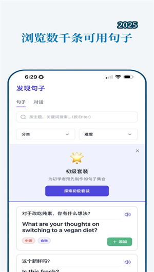 2. 場景驅動的內容生成與適配:平臺深刻理解成人學習者的核心訴求——學以致用。因此,其內容體系徹底圍繞真實場景驅動。無論是免費計劃的精選句庫,還是高級會員的AI自定義生成器,產出的句子都是能夠在特定場合下直接使用的實用表達,而非教科書式的孤立例句。用戶可以將學習內容與自身的家庭、工作、旅行計劃或興趣愛好強關聯,練習“你真正想說的話”。這種高度相關性能激發強烈的學習內驅力,用戶調研顯示,場景驅動學習者的長期堅持度是傳統單詞APP用戶的2.3倍。