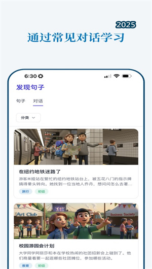 3. 從句子到對話的平滑過渡設計:語言島APP的終極目標是實現流利對話,其學習體系設計始終指向這一目標。每個主題島嶼內的句子并非孤立存在,而是包含了該場景下常見的提問、回答、承接和轉折表達,本身就是一個微型的對話劇本。平臺正逐步引入基于島嶼內容的“情景對話模擬”功能,讓用戶與AI進行角色扮演練習。這種從掌握核心句子,到在主題內進行句子串聯,再到模擬真實對話的平滑過渡設計,確保了學習者能力的有機增長,而非跳躍式的斷層,為最終實現無礙交流奠定了堅實基礎。