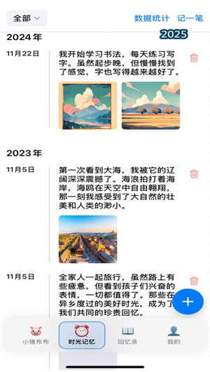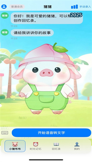 1. AI引導式記憶喚醒與敘事記錄功能:人生影畫的核心是其獨特的AI引導敘事系統,由智能伙伴「小豬步步」驅動。該系統通過預設的主題對話樹(如“童年趣事”、“第一份工作”、“重要旅行”)與用戶進行漸進式深度聊天,以溫暖、提問的方式,引導用戶逐步回憶并講述細節。用戶可以通過語音即時輸入或文字補充記錄來回應,所有的對話內容與用戶自主添加的圖片、旁白語音均會被自動歸類并錨定在虛擬的人生時間軸上,形成初步的生命故事素材庫。