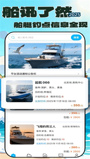 拼個船App是一款專為現代海上娛樂活動設計的創新型船艇共享預約平臺,標志著“新航海時代”的數字化啟航。本應用以一站式船艇預約中樞為核心理念,通過整合嚴選船艇資源庫、智能檔期匹配引擎與多維服務保障體系,為用戶提供從出行靈感激發到行程完美落幕的全流程解決方案。平臺深度覆蓋漁樂海釣、伴友出行、海上派對及游艇觀光等多元化場景,并集成了專業的天氣潮汐預測、魚汛分析與海釣保險等增值服務。拼個船App不僅是一個預訂工具,更是一個連接船東、船長與海上愛好者的垂直社交互動社區,通過構建精彩資訊分享與釣技交流平臺,持續激發用戶對海洋的熱愛與探索。自上線以來,平臺已匯聚超過 5000艘 認證船艇,服務逾 80萬 人次,用戶行程滿意度高達 94%,成為沿海城市海上休閑娛樂的首選數字化門戶。