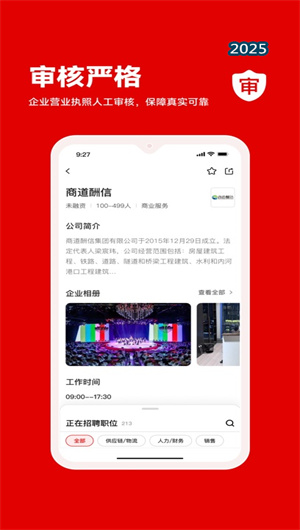 為構(gòu)建可信賴的求職環(huán)境,平臺建立了嚴格的企業(yè)信用認證體系。所有發(fā)布崗位的企業(yè)均需通過工商信息核驗、對公賬戶認證等多重審核,并在其主頁展示企業(yè)信用標識。平臺還設(shè)有崗位真實性巡檢機制,通過算法與人工結(jié)合的方式排查虛假、過期或描述不符的崗位,一經(jīng)確認立即下架。用戶可以對面試體驗、HR響應(yīng)速度等進行評價,這些雇主口碑數(shù)據(jù)會公開展示,為其他求職者提供參考。這套體系有效保障了 95% 以上的崗位真實有效,讓求職者能夠安心應(yīng)聘。