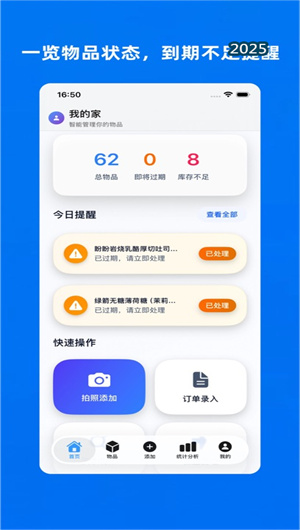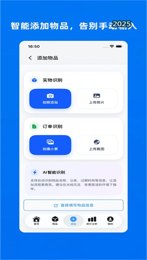 應(yīng)用的核心功能是其先進(jìn)的多模態(tài)物品信息錄入系統(tǒng)。用戶可通過 AI拍照識別模塊 直接拍攝物品,系統(tǒng)基于預(yù)訓(xùn)練視覺模型自動識別商品名稱與分類(如“牛奶”、“抽紙”)。對于有包裝的商品,可使用條碼掃描器掃描商品條形碼,秒速從云端數(shù)據(jù)庫調(diào)取詳細(xì)信息。更強(qiáng)大的是其 OCR文字提取引擎,可自動定位并識別包裝上的生產(chǎn)日期與保質(zhì)期信息,實現(xiàn)關(guān)鍵信息的免手動輸入。所有錄入操作均支持批量添加與編輯,極大提升建庫效率。