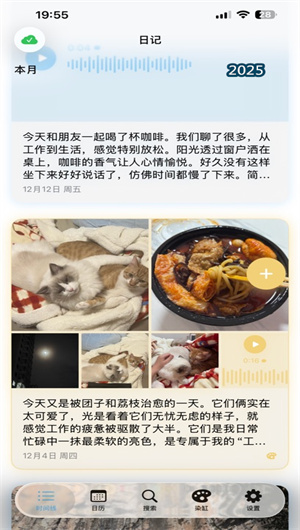 《片羽》App的核心記錄方式是 “輕量化語音捕捉”。用戶只需打開App,點擊屏幕中央的錄音按鈕,即可開始記錄,過程如同與一位最信任的朋友進行一場隨性的聊天。應(yīng)用刻意摒棄了復(fù)雜的標(biāo)題、分類或標(biāo)簽要求,鼓勵用戶 “想說什么就說什么”,無需事先組織語言,更無需費力打字。無論是通勤路上突然的感悟、廚房里的一段哼唱,還是睡前幾分鐘的喃喃自語,都可以在數(shù)秒內(nèi)被轉(zhuǎn)化為一條私密的語音記錄。這種基于聲音的 “輕松記錄” 方式,極大地降低了記錄的心理門檻和操作成本,讓捕捉靈感與情緒成為一種本能般的自然行為。