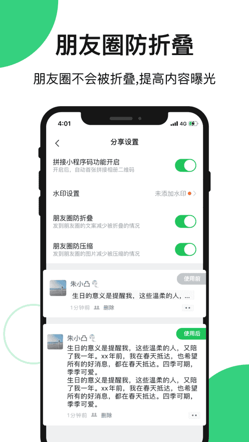 1、朋友圈不會被折疊,增加內容曝光率。