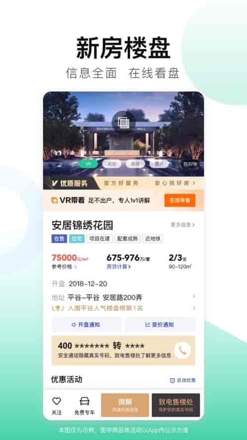 3、新房源樓盤信息實時在線更新,樓盤信息全面搶占第一手樓盤資料,支持線上VR全景看房源。