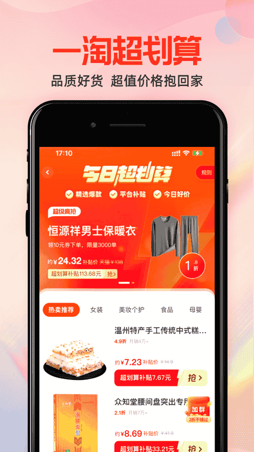 4、一淘超劃算,質(zhì)量好,特價帶回家。一淘榜公布,銷量自動更新,跟風買買買。