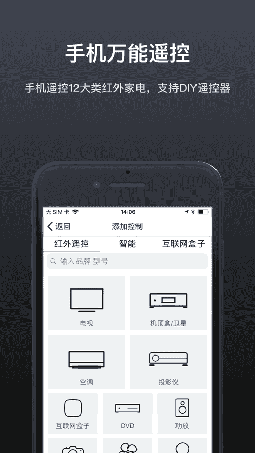 3、手機(jī)萬能遙控12大類紅外家電,如:相機(jī)、風(fēng)扇、紅外開關(guān)、熱水器、空氣凈化器、掃地機(jī)器人、電暖器、加濕器等。