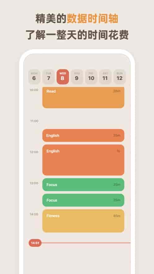 3、精美的數據時間軸,了解一整天的時間花費,全新的數據統計上線啦,聚集質量,拒絕多余。
