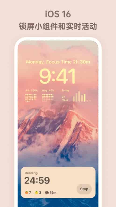 1、ios16鎖屏小組件和實時活動,iCloud實時數據同步,認真關心你的時間,讓努力更有價值。