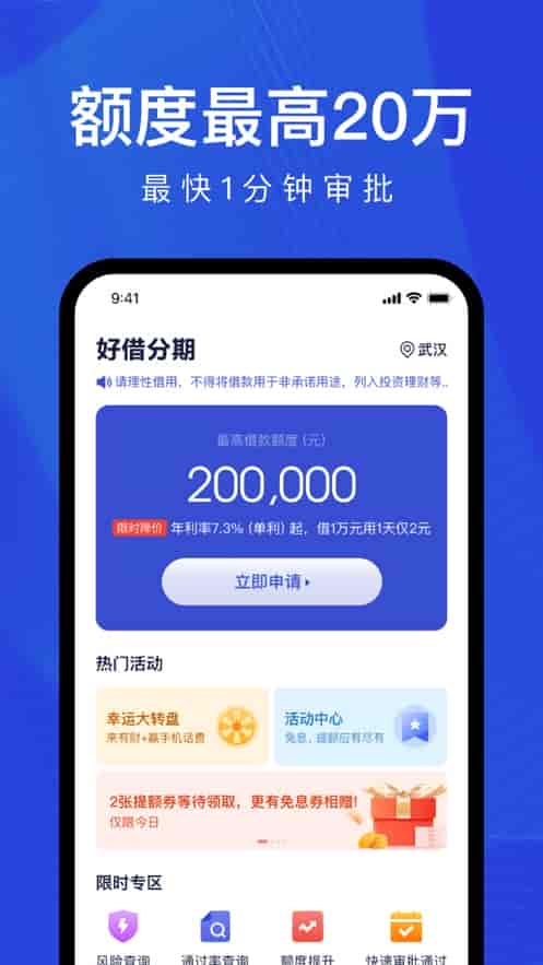 3、小額輕松借,大額高至20萬,根據您的用款需求選擇額度!無抵押貸款,不用到處跑,輕輕松松線上申請。
