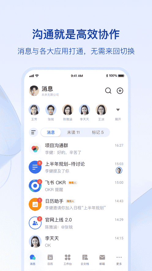 1、溝通就是高效協作,消息與各大應用打通,無需來回切換。
