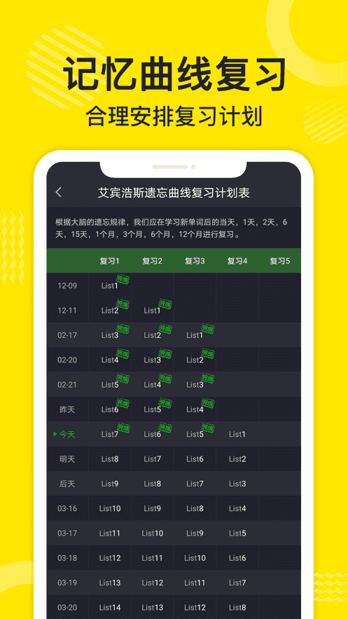 4、綜合學(xué)習(xí)數(shù)據(jù),讓您隨時(shí)了解課程學(xué)習(xí)、單詞熟悉度、學(xué)習(xí)錯(cuò)誤次數(shù)和剩余準(zhǔn)備頻率、 累計(jì)學(xué)習(xí)單詞、時(shí)間、記憶曲線、毅力曲線等。