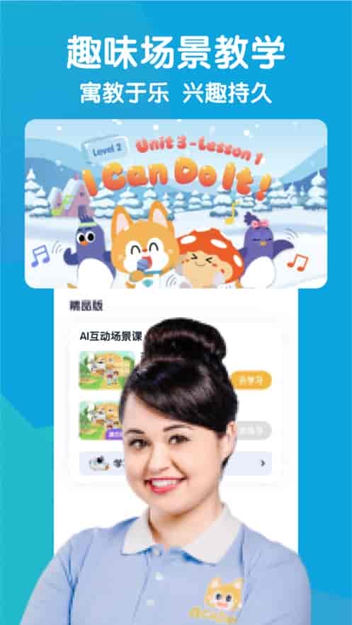 1、Ai北美本地地道發音,線上智能與小朋友互動環節,讓小朋友口語發音標準,輕松與國際友人對話。