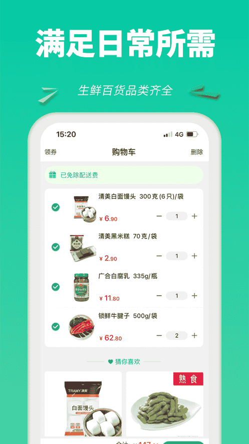 3、生鮮百貨品類齊全價格實惠,足不出戶就能滿足您的日常需求。