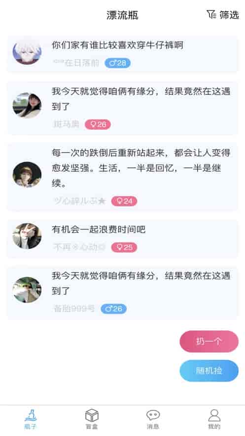 1、是否在尋找一款人多好用的漂流瓶?沒事就來扯淡閑聊,說你想說的。