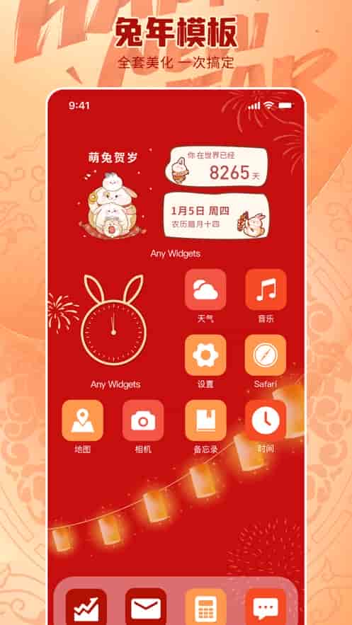 1、春節(jié)鎖屏組件,春節(jié)系列鎖屏小組件任你挑選,兔年組件,新年新氣象,桌面穿新衣。兔年模板,全套美化一次搞定。