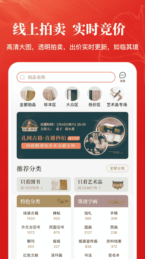 2、線上拍賣,實時競價。高清大圖透明拍賣,出價實時更新,如臨其境。