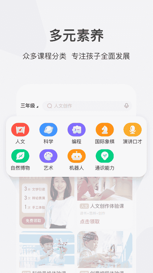 2、參考國家教育部人教教材綱要權(quán)威依據(jù)發(fā)行,人文創(chuàng)作+科學(xué)+編程+國際象棋+口才等課程精選分類教學(xué),全部符合孩子認知發(fā)展特點。