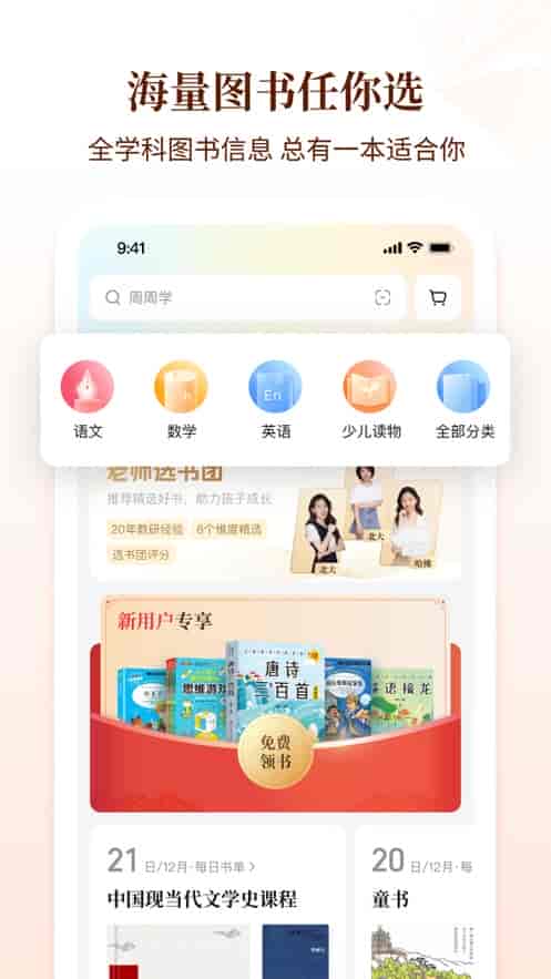 3、讀物學習,專業書評老師選書團,20年教研沉淀多維度測評,全學科精品圖書為您量身選書,配備智能教輔系統,助力孩子在讀書的同時健康成長。
