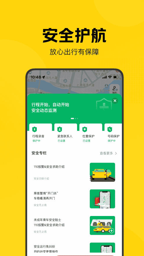 3、專業服務,品質出行舒心路途,安全出行,行程分享號碼保護,更多安全服務伴你行。