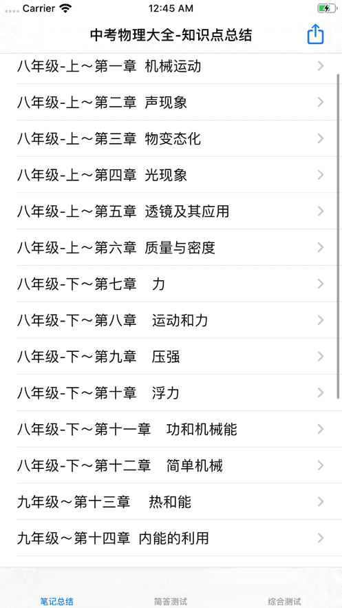 中考考前物理復習App,內容涵蓋了所有物理中考復習必備知識點、測試題大全。