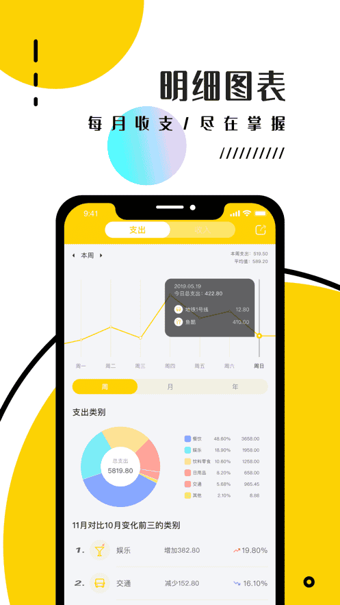 金手指記賬是一款隨處消費隨時記錄的記賬軟件,分類清晰,類目多樣,記賬流程簡單流暢,折線圖表、時間軸記錄讓你每月的財務狀況一目了然。