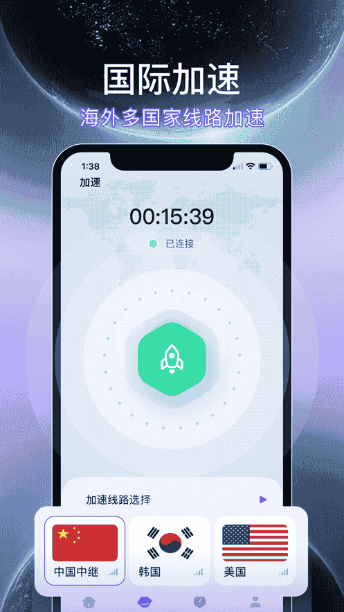極速火箭加速器App,適用于快速加載,減少卡頓、緩沖你想到想不到的我們都能給你,是一款快速穩定安全的全球網絡加速軟件。