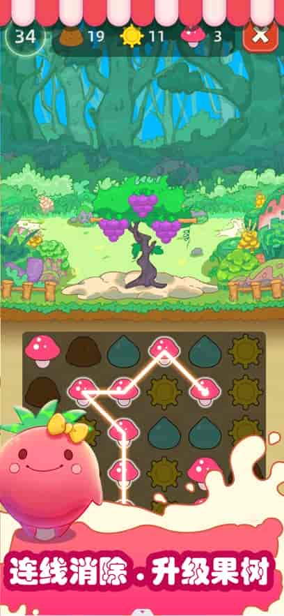2、通過連線消除相同的果樹,可以使果樹升級,產出更多的水果。