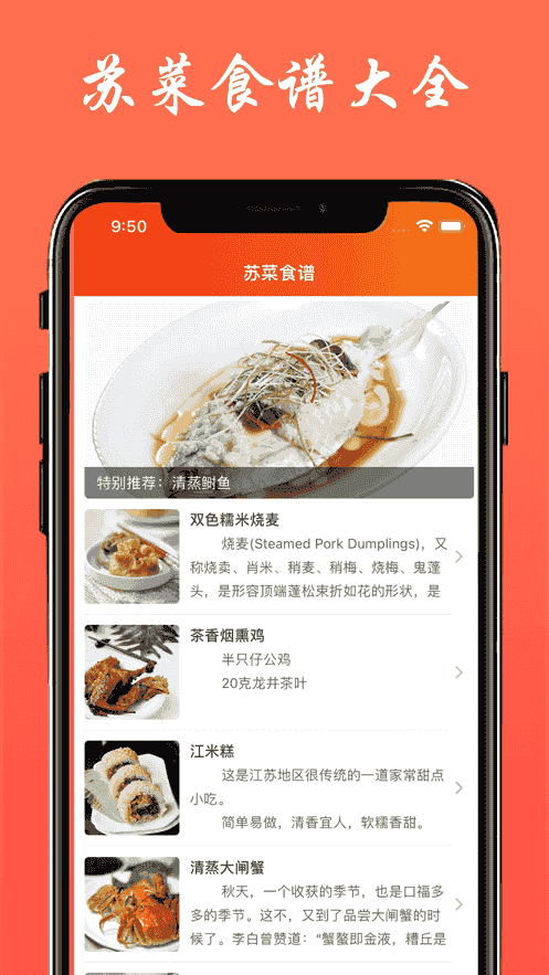2、為用戶提供詳盡的烹飪步驟圖文教程,親手制作地道蘇菜,智能推薦適合用戶的菜譜,讓用戶隨時發現新鮮美味的佳肴。