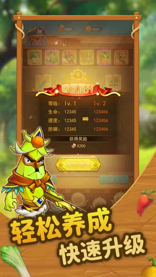 裝備升級:收集和升級裝備,增強(qiáng)您的蔬菜勇士實(shí)力。