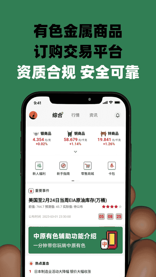 中原有色App是一款專業的小額商品訂購應用,為用戶提供商品訂購、商品原料行情信息、財經資訊等功能。具有成本低、訂購方式靈活的特性,最低5元起訂購,只要手機號即可注冊。