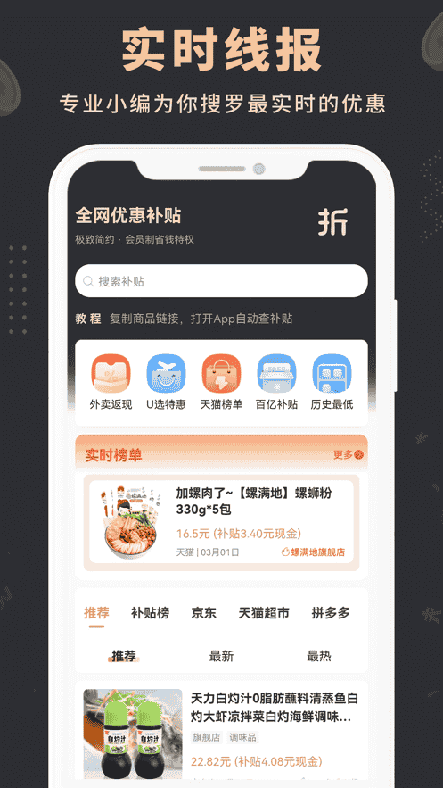 跨平臺補貼:集成了淘寶、天貓、拼多多、京東等多個平臺的補貼服務。