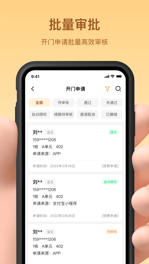 開門審核:物業人員可以在移動端輕松審核業主的開門請求,確保小區安全。