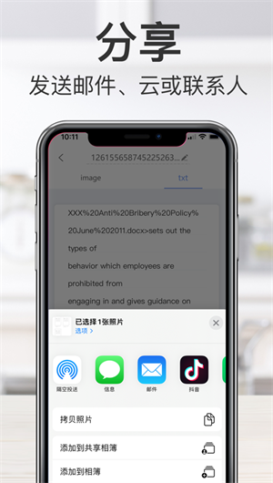 文檔共享:輕松共享掃描的文檔,無論是通過電子郵件,還是其他社交平臺。